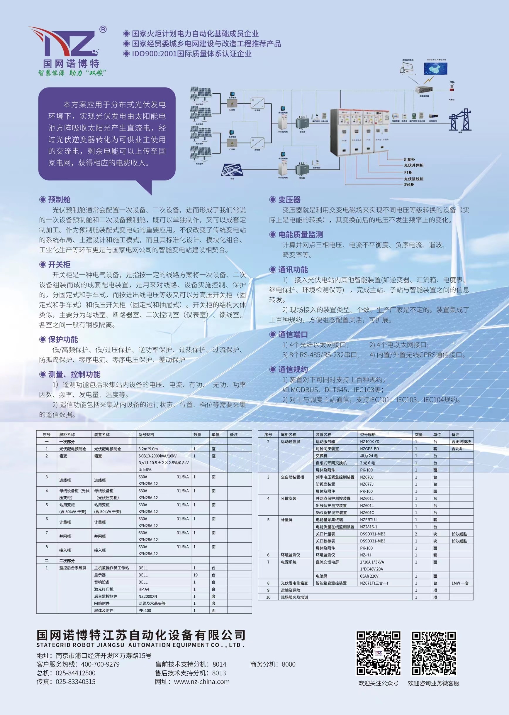 摘要:中能建安徽院合肥海恒物流分布式光伏發(fā)電項目一期3.65MW項目,采用自發(fā)自用余電上網(wǎng)方式,發(fā)電系統(tǒng)性質(zhì)為分布式光伏系統(tǒng)。本工程光伏組件擬選用550Wp組件,光伏方陣裝機容量為3.65MWp,配置2個并網(wǎng)點。我司為本項目提供了全站綜自系統(tǒng)、電源系統(tǒng)、故障...